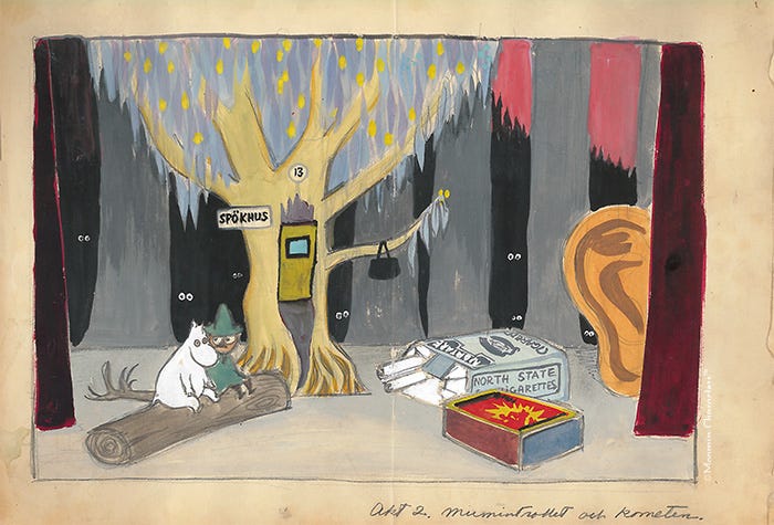 The artist and writer Tove Jansson (1914-2001) (an obsessive figure for me; I’ve written about her here) carefully archived her multidisciplinary work and life ephemera, starting with her childhood drawings and diaries. Her biographer gained access to this trove of “masses of notes, manuscripts of stories and talks, lists, drafts, sketches, drawings, plans for projects of various kinds, photographs, diary notes, cuttings, articles, every kind of letter and correspondence, programmes, catalogues, and so on.” Both “personal” and “strictly documented,” it provided a “picture of the writer and artist who built up this large memorial to herself and her work.” (First discovered in Tove Jansson Life, Arts, Words, by Boel Westin, trans. Silvester Mazzarella, 2013).